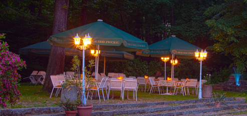 50 Sitzplätze in unserem idyllischen Gästegarten (über 3000 qm). In der warmen Jahreszeit erfreut dieser sich besonderer Beliebtheit auch bei unseren Hotelgästen, die Naherholung pur am Springbrunnen unter uralten Kastanienbäumen abseits von der Hast des Tages mit Bedienung und bei gepflegten Speisen und Getränken genießen.